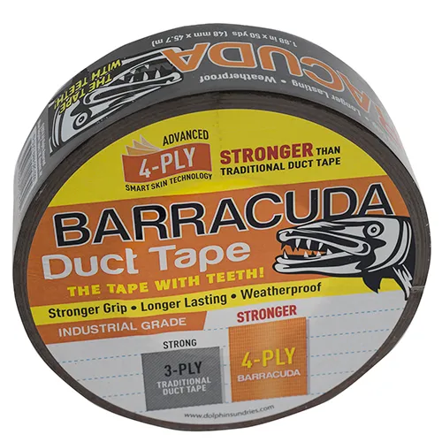 Blue Dolphin™ Barracuda Duct Tape is composed of a strong heat-bonded 4-layer construction and is tough but tears easily and remains flexible. SmartShin backing makes the adhesion longer lasting when compared to other traditional duct tapes.