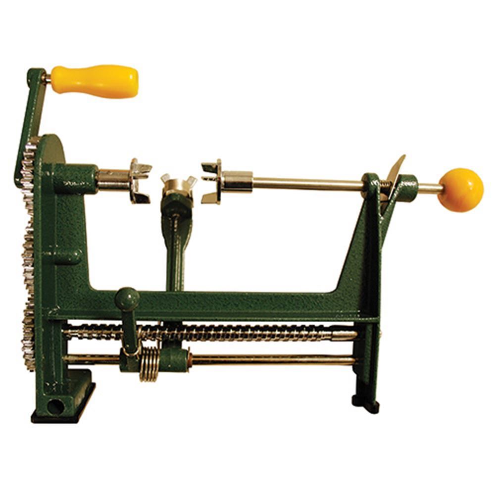 Peel fruits fast in preparation for pies or peel potatoes for a potato salad and save time with this peeler machine. With a practical, easy to use design, this orange peeler machine is green powder coated for durability. After each use, clean the fruit peeler machine of juices to preserve its life.