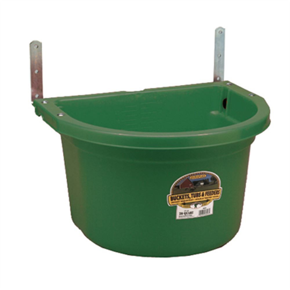 This is a 20 Quart Fence Feeder. Great way to feed your livestock or horses. Easy to install with the supplied brackets (Screws not included). Holds 5 gallons.