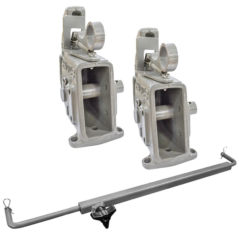Adjustable elements make this Pat's 3-Point quick hitch category 2 easy to operate. Pat's quick connect comes with a set of two quick hitches that are simple to install, requiring no modifications to your tractor. The stabilizer bar adjusts from 23 to 33 inches long to accommodate different implement widths. The lift arms have a range measuring from 2 to 4-1/2 inches tall and the stabilizer bar can also be removed after the hook attachment is complete. Pat's 3 point hitch even picks up equipment that is not on level ground. The spring loaded latch and hook system makes it a cinch to secure your 3-point implement. The latch can also be locked in an open position to help move equipment around.