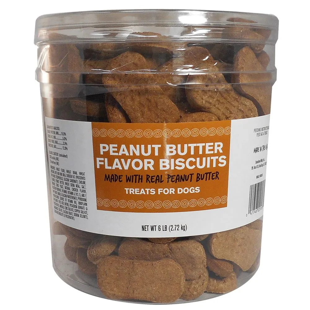 These peanut butter dog biscuits are all natural and contain no artificial flavors, colors or preservatives. This makes them a healthy choice for your dog and the peanut butter flavor is sure to please. Their crunchy texture will also help keep your dog's teeth clean.
