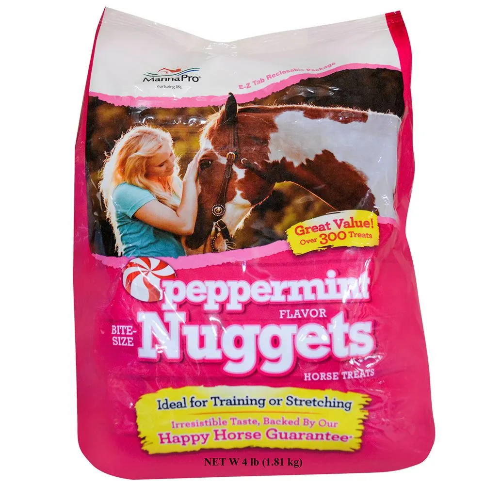 Reward your horses and ponies after they behave well for the vet, farrier or trainer. These peppermint flavored horse treats by Manna Pro® are sure to be a barn favorite. The perfect bite-sized treats are easy for your 4 legged friends to eat, and this 4 lb. bag has about 300 of them. Upon opening a treat bag, it is best to restore it in a sealed container to prolong the freshness and prevent the treats from becoming stale. Although these peppermint horse treats are formulated with a variety of vitamins and natural ingredients, they should be given as occasional treats and not a main diet source.