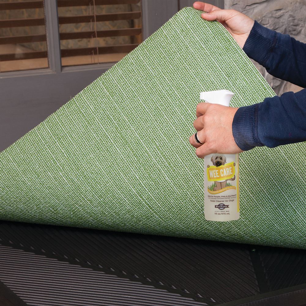Petsafe® Wee Care Toilet Cleaner uses enzymes to remove pet stains from carpet, upholstery, cat litter pans and other surfaces.