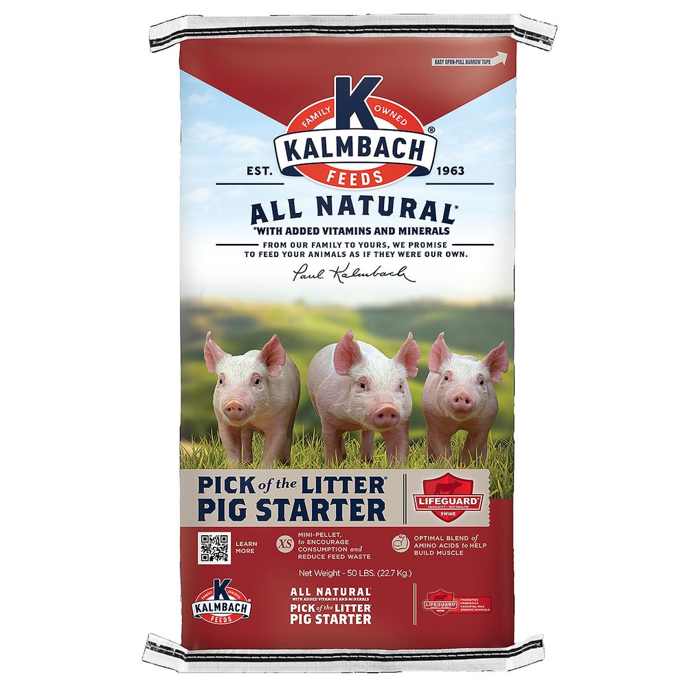 Kalmbach® Pick of the Litter® Pig Starter contains all of the necessary ingredients for a complete feed for starting pigs.
