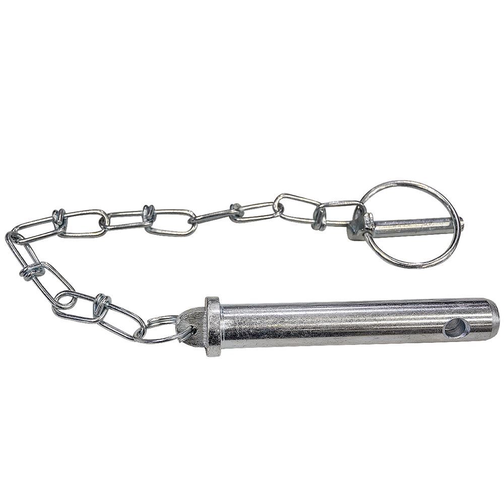 Do you need to replace your pin on your Bellonmit 39", 47", or 55" Flail Mower? This replacement pin fits on the 3 point linkage adjustment and has an overall length of 5 in and overall diameter of 9/16 in. and features a 12 in. chain with a 2 in. lynch pin.
