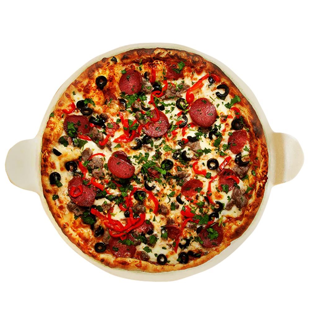 The Pit Boss® 15 inch Pizza Stone is the perfect cooking surface for all your baking needs. Durable ceramic construction allows the Pit Boss® 15 inch Pizza Stone to be used on the grill, oven, or microwave. In addition to the perfect pizza, the 15 inch stone can be used for baking cookies, fries, or quesadillas. Heat is distributed evenly thanks to the ceramic material so hotspots are avoided.