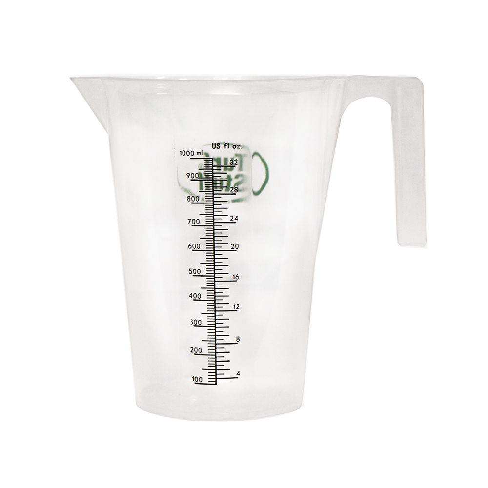 Plastic measuring pitchers make it easy to accurately measure and pour chemicals and pesticides into your sprayer pumps or other various lawn and garden treatments. Made by Turf Stuff®, this measuring pitcher can hold up to 32 oz. or 1000 ml. It is constructed of a thick-walled polypropylene that is food grade polypropylene compliant. It features an open, ribbed handle that allows for easy handling, even with gloves. This plastic measuring pitcher also has an easy pour spout, so you can have better control and aim when emptying chemicals through narrow caps.