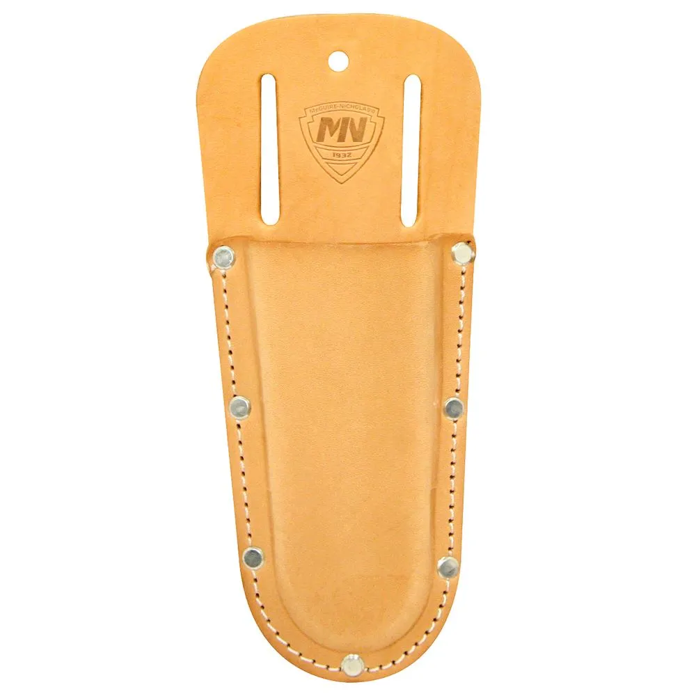 Open end pliers & tool saddle leather holder. This holder is designed to fit most pliers and has a round shaped open end design. It is extra rivet reinforced with 2-3/4" belt slots. This holder is made from saddle leather that is rugged and stiff. This leather can be molded to create a specific shape. This extra strength hide has a fine grain structure that resists tearing and punctures.