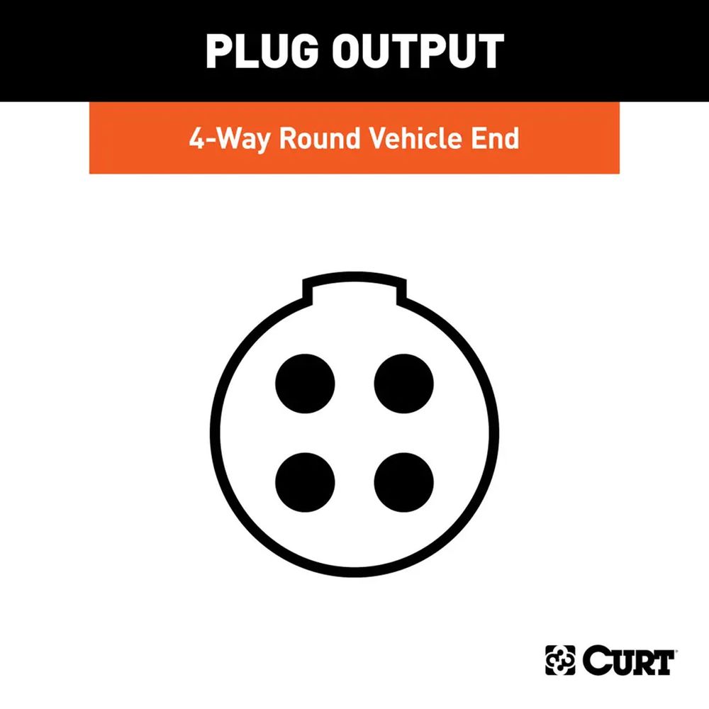 Durable 4-way round trailer connector: powers tail, turn, brake lights & ground. Weather-resistant metal, concealed terminals, spring cover.
