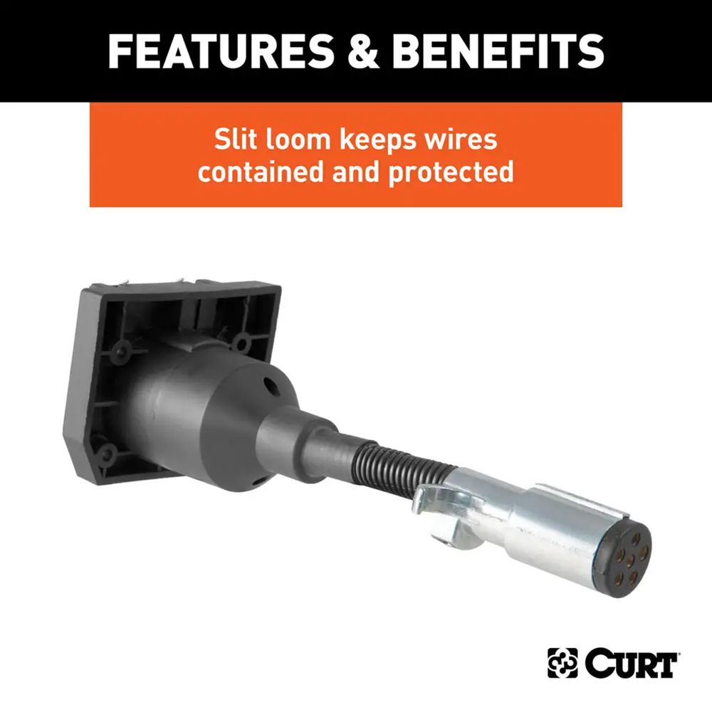6-way round to 7-way RV blade trailer plug adapter. Easy plug & play for all essential trailer power. Includes dust cover & wire loom.