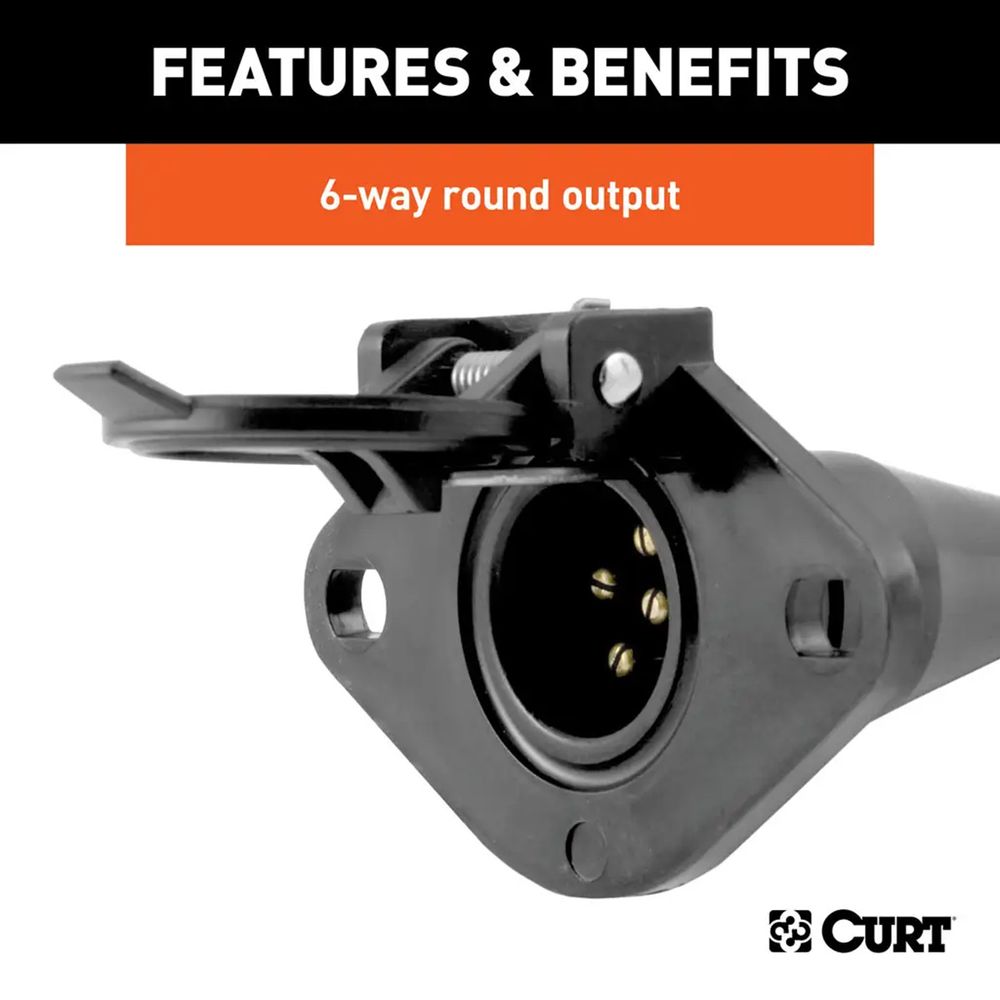 This splice-in harness provides a 6-way round connection (all essential functions) to your vehicle's wiring. Features concealed terminals and a dust cover.