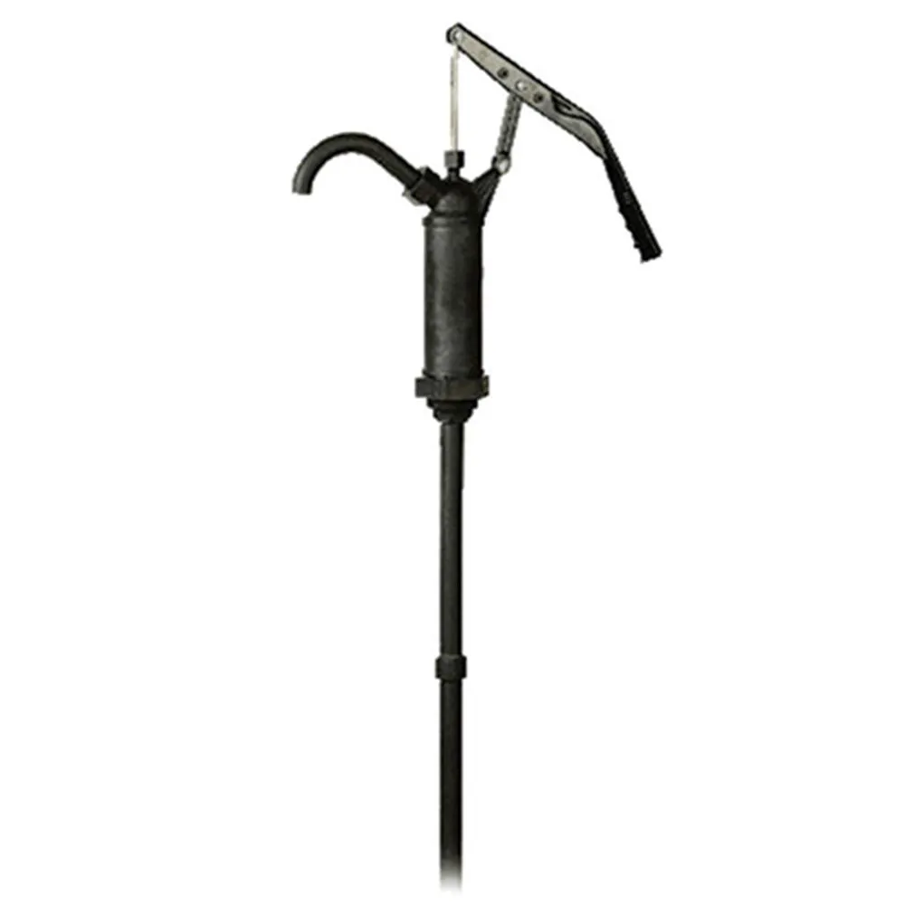 Designed for use with water, DEF, diesel, bio-diesel and heating oil, this hand pump is a convenient way to transfer liquid from the source to where you need it. The hand pump is constructed with a polypropylene body, teflon seals, stainless steel piston rod, poly spout and ABS lever. A three piece dip tube is supplied and will fit drums from 15 to 58 gallons.