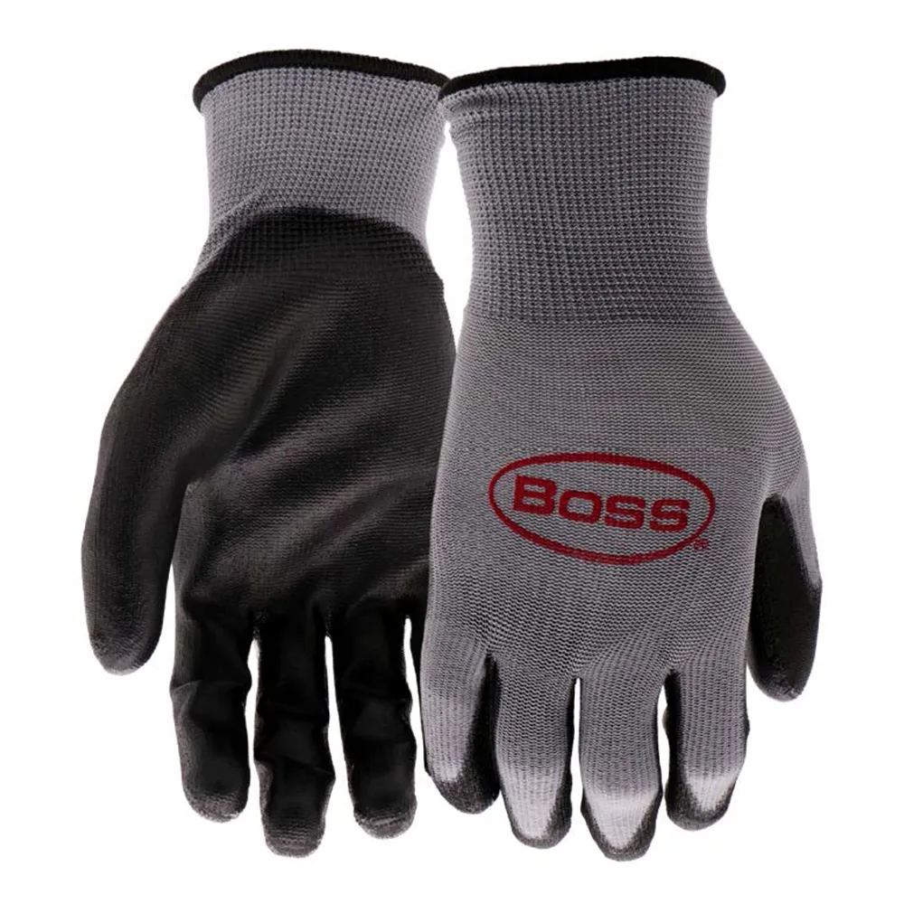 This pair of Boss® gloves feature a PU-coated palm that provides excellent resistance to water, oils, fats, greases, solvents, gas, and other chemicals keeping your hands dry and protected when working jobs such as electronics, automotive work, metal handling, aeronautics, tool and equipment handling, yard work, DIY projects and more.