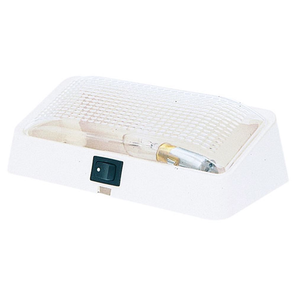 Light up your porch, garage, or work space with this bright rectangular utility light. This porch light, available with a switch and clear lens, has a colonial white base that will match most decor. The lens snaps easily on and off for quick bulb replacement. This light also contains a separate ground wire and has a stationary downward angle to provide maximum illumination.