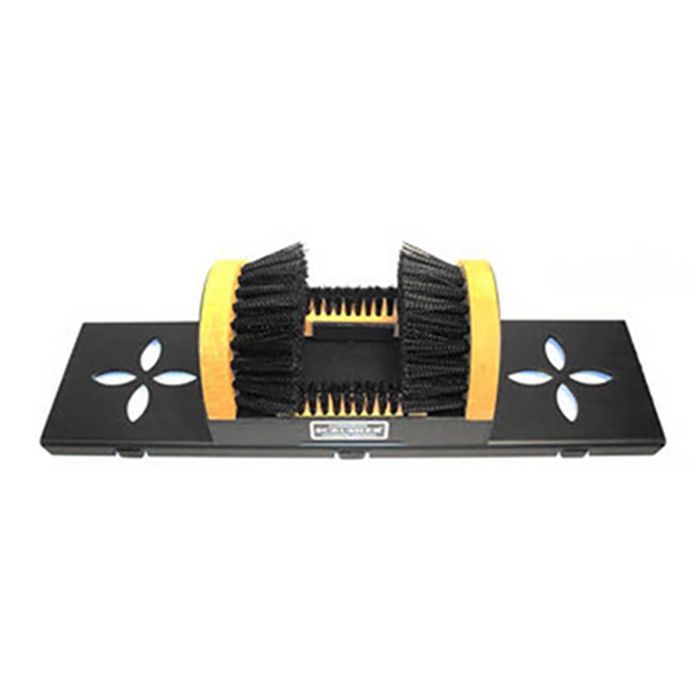This portable steel base is for the Original Scrusher®. It keeps the Scrusher Boot Cleaner in place when cleaning footwear. It is easily picked up and used anywhere.