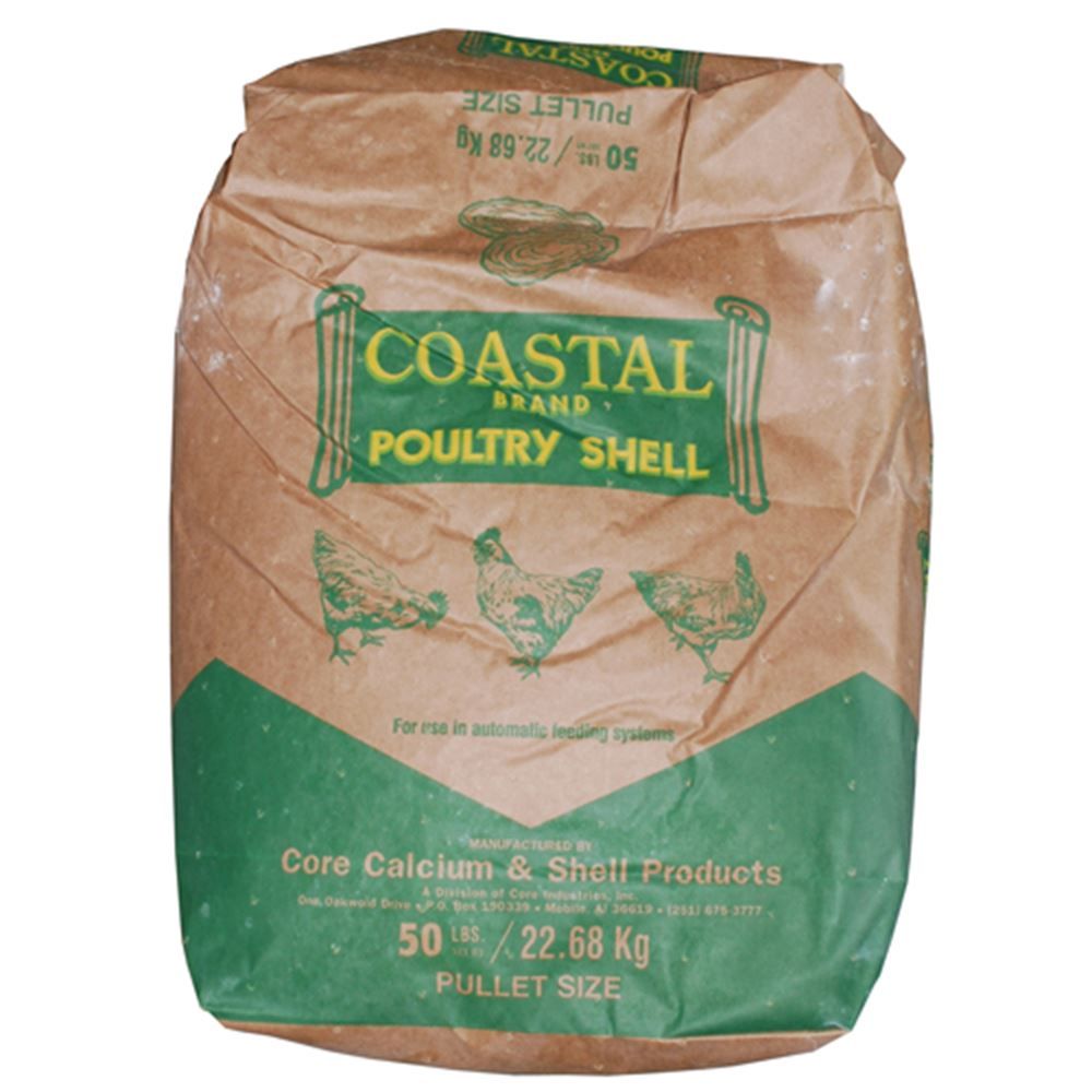 Poultry need calcium and the Coastal Brand Poultry Shell provides soluble calcium essential to the development of strong bones and egg shells. This 50 lb. bag provides high levels of consistent calcium to birds.