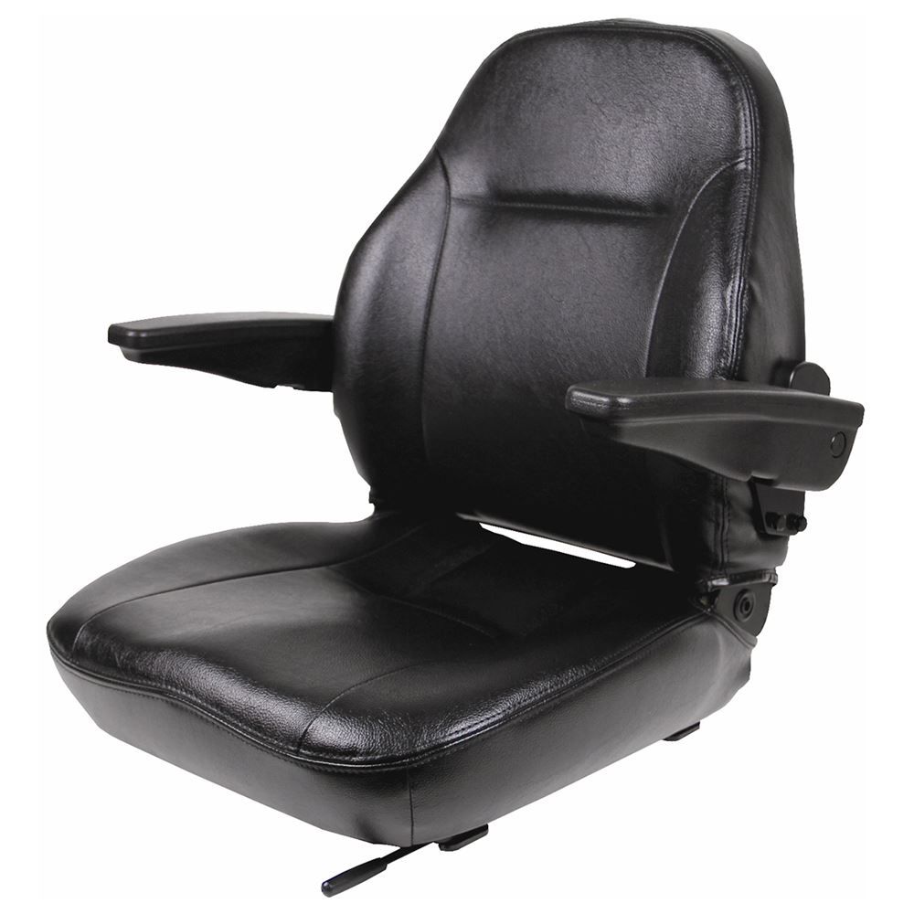 This premium heavy-duty high back seat features an adjustable armrest, upper backrest, and slides. Also made from heavy-duty vinyl or fabric this seat is water-resistant.