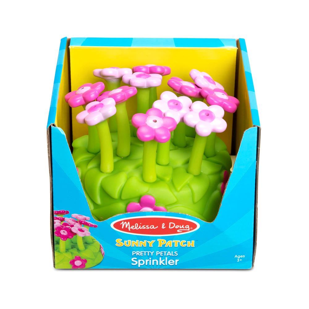 This Pretty Petals Sprinkler waters you. This outdoor fun sprinkler has 12 Pretty Petals Flowers that each squirt water. It attaches easily to a garden hose and can be used to water the garden as well.