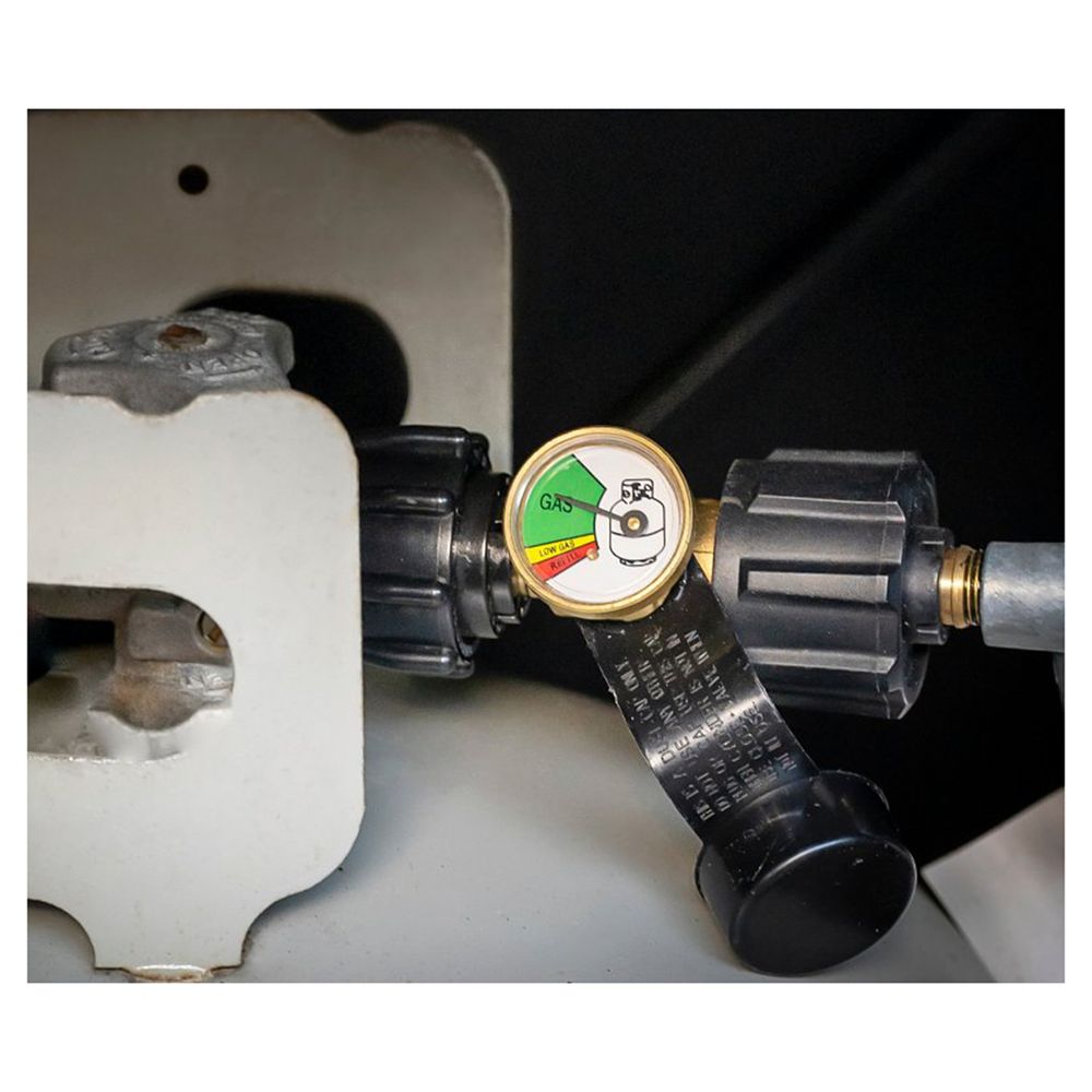 Easy-to-read color analog propane tank gauge that is perfect for grills, boating, and RVs. Features an emergency flow control and automatic shut-off leak detection. Made to fit all type 1 appliance connections.