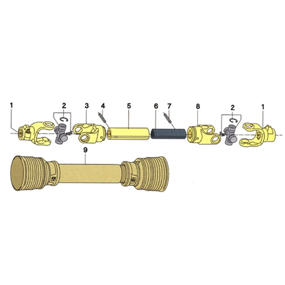 • Tractor & implement ends are 1 3/8" x 6 spline