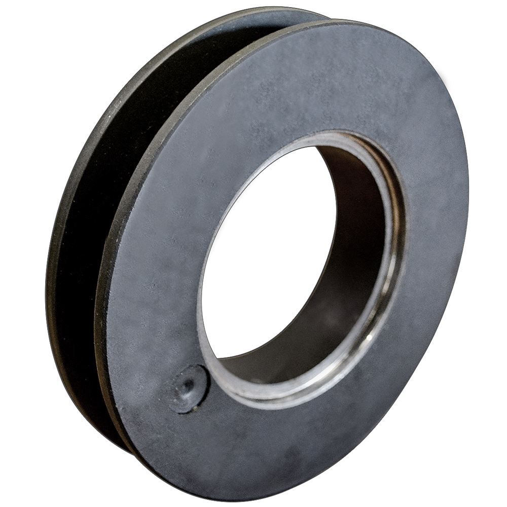 This is a replacement single pulley that is made to fit the 4' Bellonmit rear finish mower. This single pulley has an overall diameter of 5" and is made of steel.