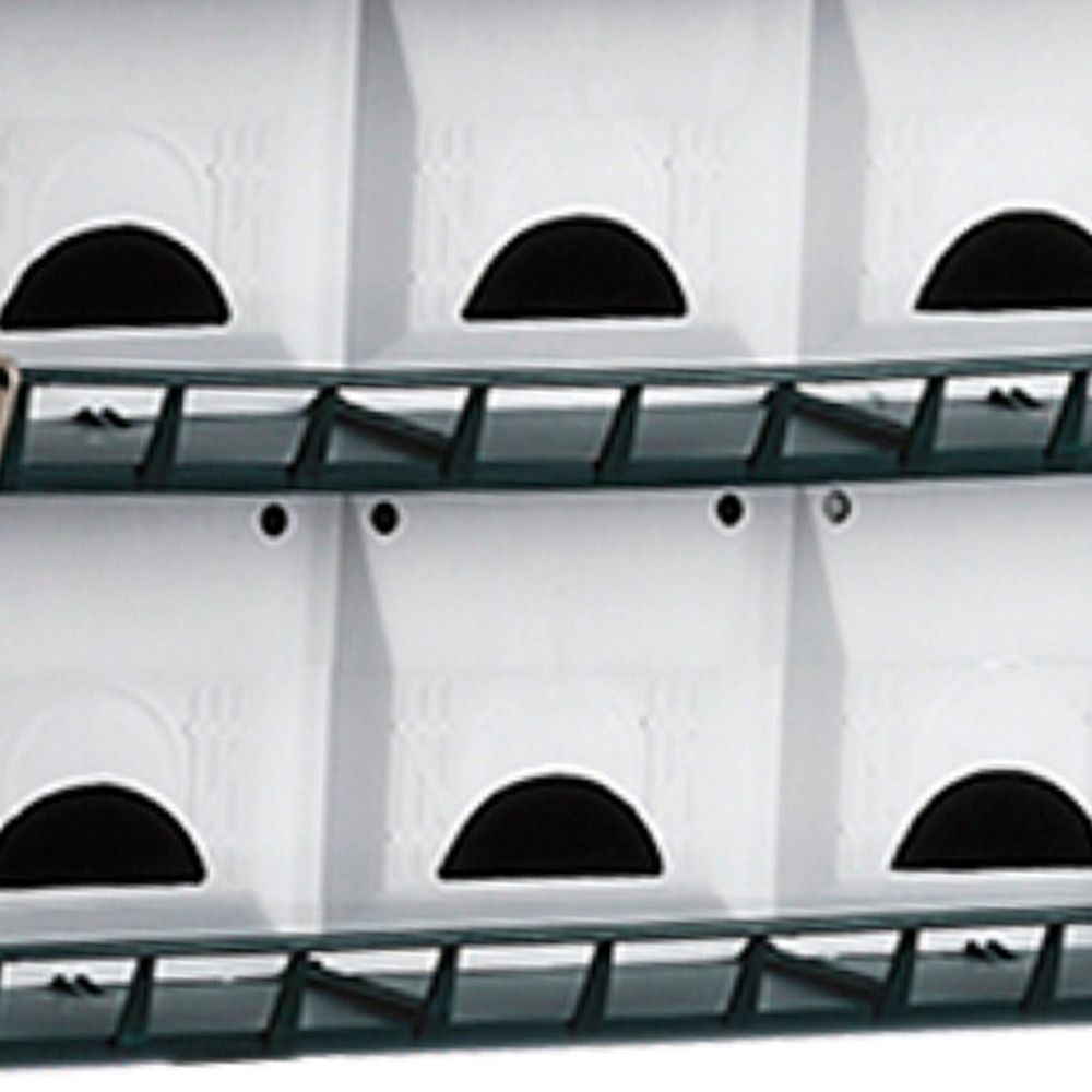 This house offers housing for 12 Purple Martin families. Every house comes with porches, landings, take-off rails, hinged doors for easy cleaning and has slightly sloped floors for drainage. The house has 12 compartments that are 6" x 6" but the compartments can be expanded to 6" x 12". The entry doors are starling resistant. The overall size is 18" x 19" x 20". It snaps together easily and no tools are required. It is constructed of 100% UV protected injected molded polypropylene co-polymer plastic.