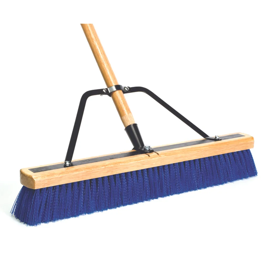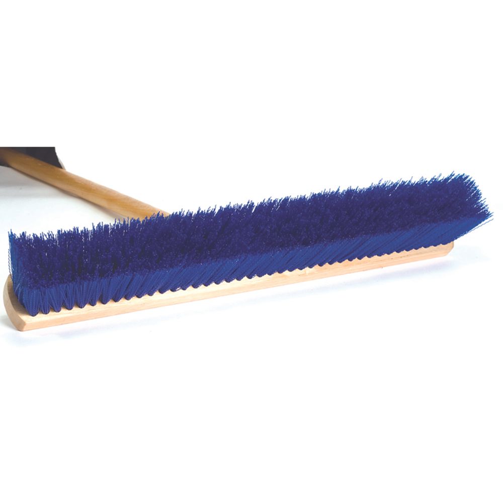 This heavy-duty 24" push broom comes with a 60" x 1 1/8" wood handle connected with a steel bolt brace reinforced with an outrigger brace. It has blue poly 3" trim.