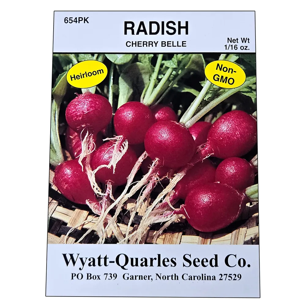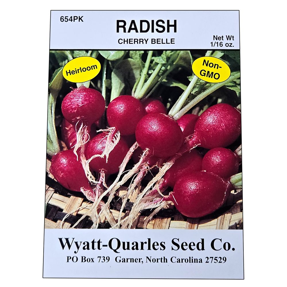 Roots are a round, bright cherry red, with crisp, white flesh. Tops can be used for radish greens. AAS winner. Typically harvested at ¾” diameter. It�™s great for bunching