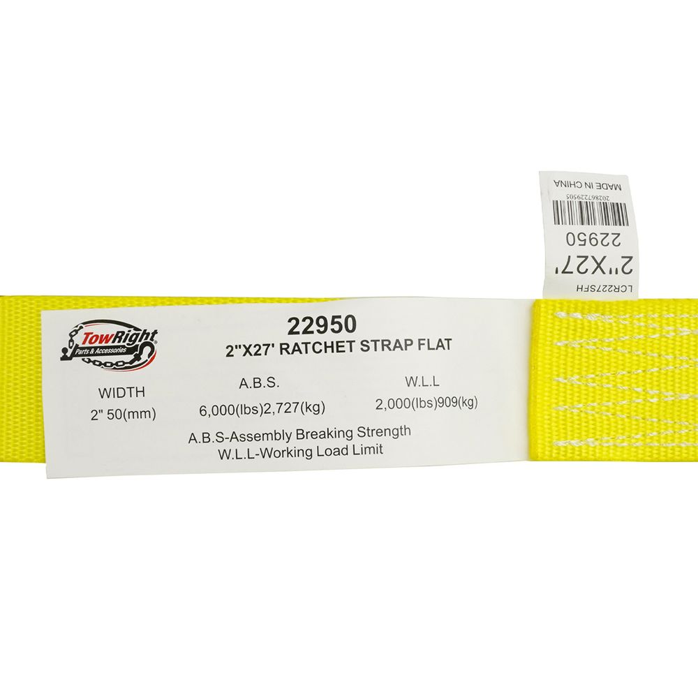 Ratchet Strap, 2 In. x 27 Ft., 2,000 Lbs. Capacity