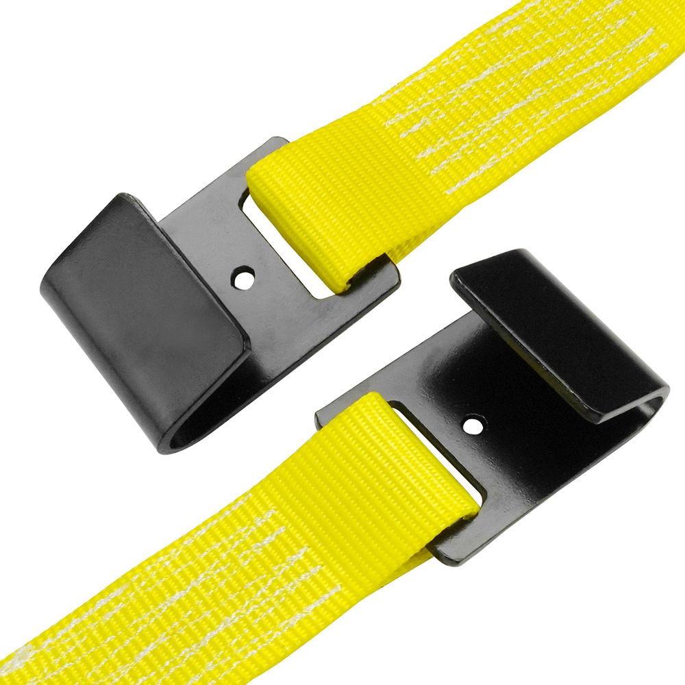 This tie down comes with flat hooks that work great with flat bed trailers and inside of moving vans. These flat hooks slip onto rails and into stake pockets for securing.