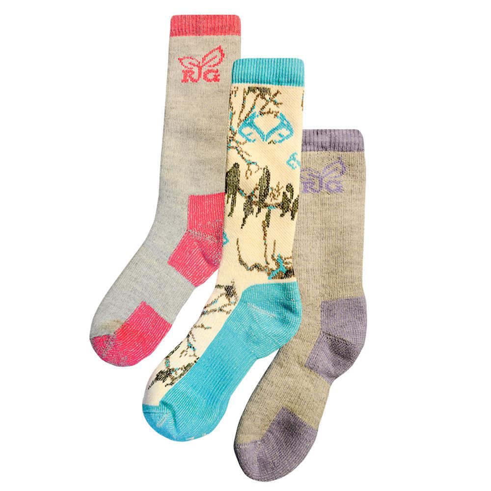 These socks are medium weight and have a full cushion leg and foot, with arch support and reinforced heel and toe for a longer wear. They are made with 65% acrylic, 20% wool, 13% nylon, and 2% spandex.