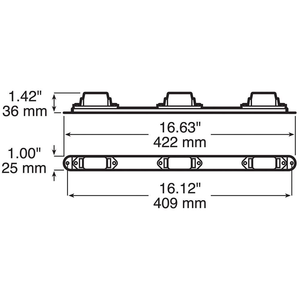 This rear economical identification bar light is for over 8 in. applications. Features a 16-1/8 in. mounting and grounds through the mounting hardware.