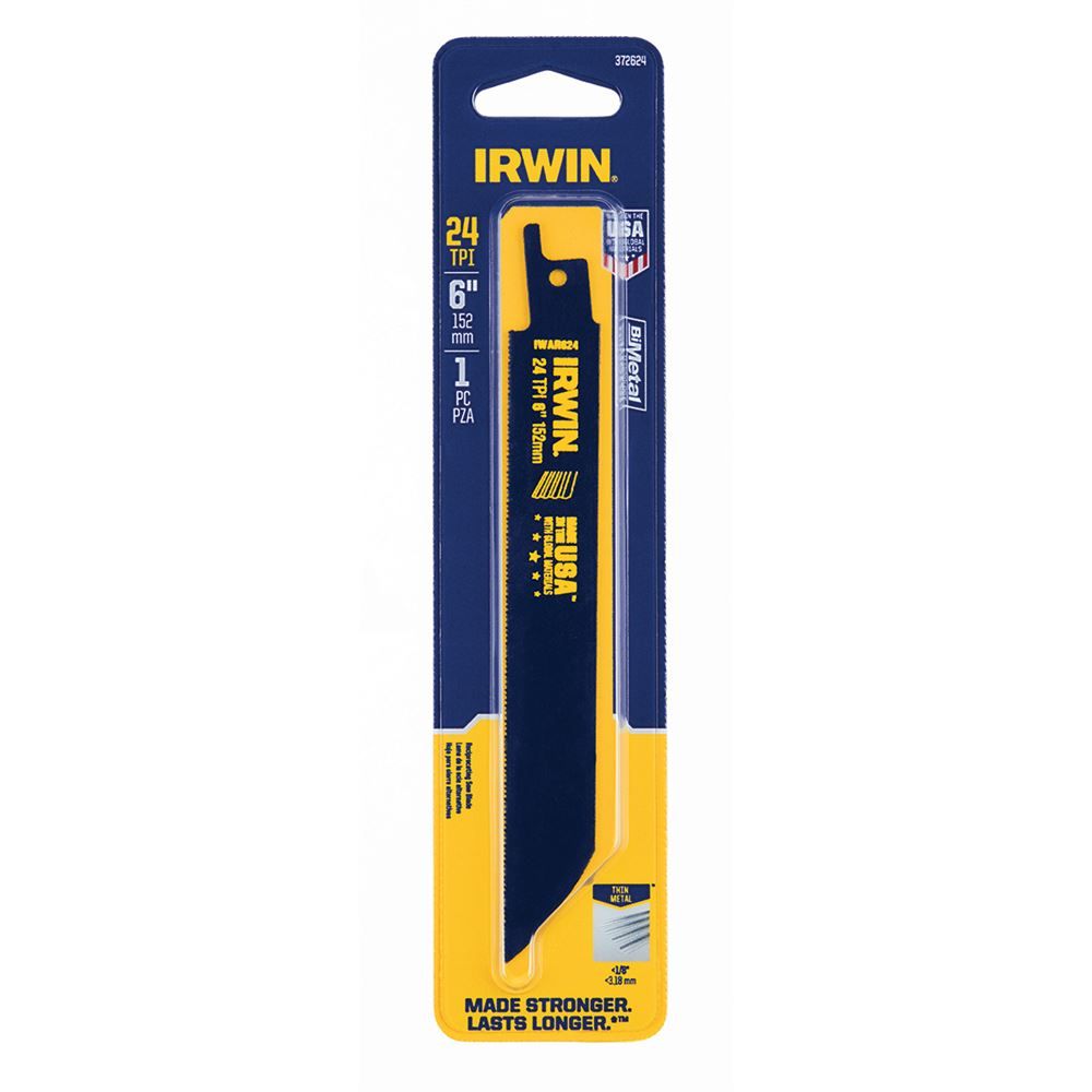 This reciprocating metal cutting saw blade is 6" in length and has 24 teeth per inch. It cuts all metals, including non-ferrous pipe, stainless steel, and sheet metal.