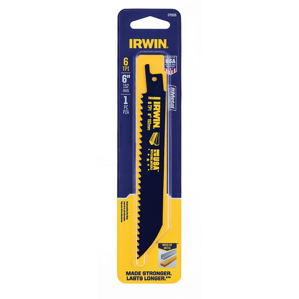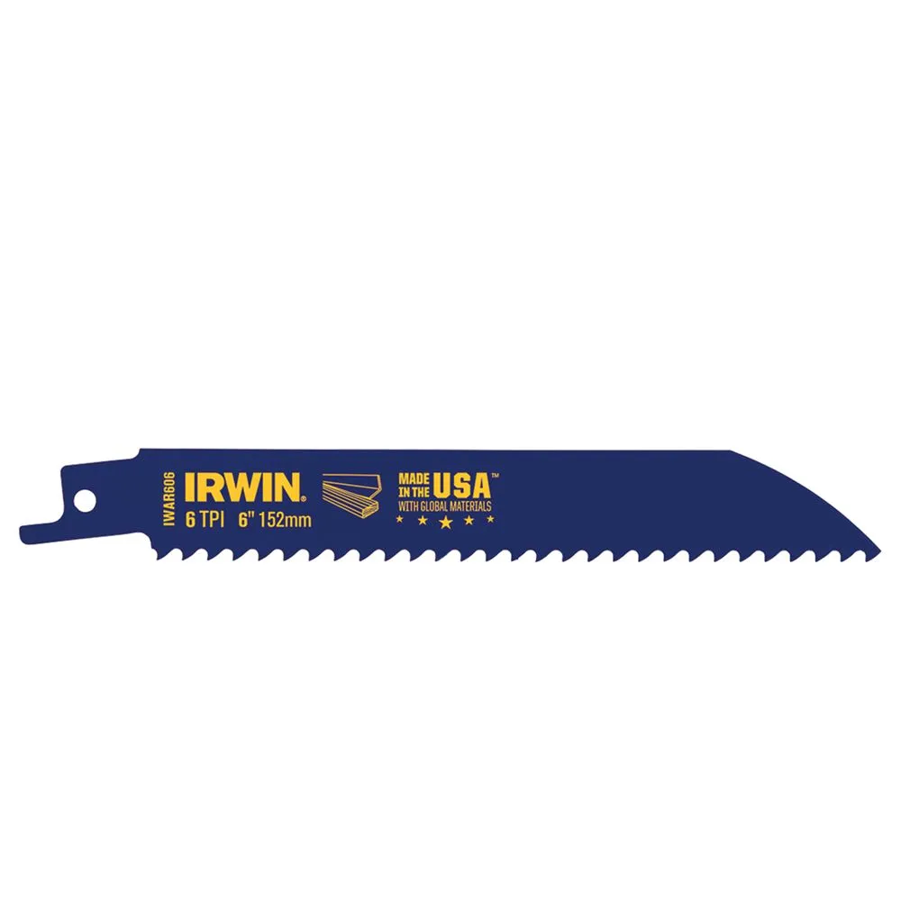 This reciprocating metal cutting saw blade is 6" in length and has 6 teeth per inch. It cuts all metals, including non-ferrous pipe, stainless steel, and sheet metal.