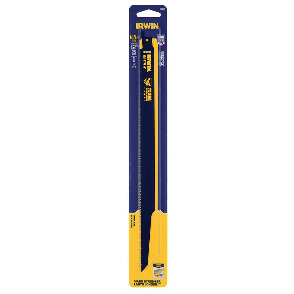 This reciprocating metal and wood cutting saw blade is 12" in length and has 10 teeth per inch. It cuts all metals, including non-ferrous pipe, stainless steel, and sheet metal.