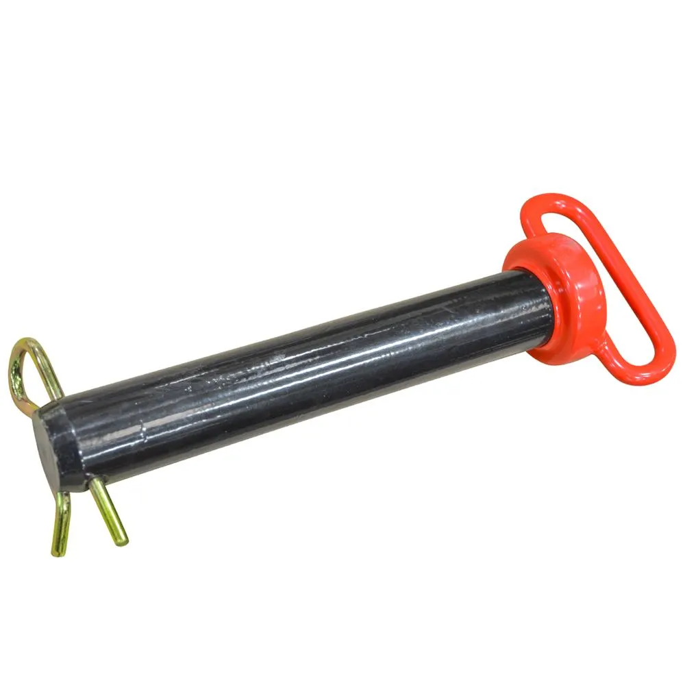 These hitch pins are made of mild steel and have a black powder coating with a red vinyl head and handle.