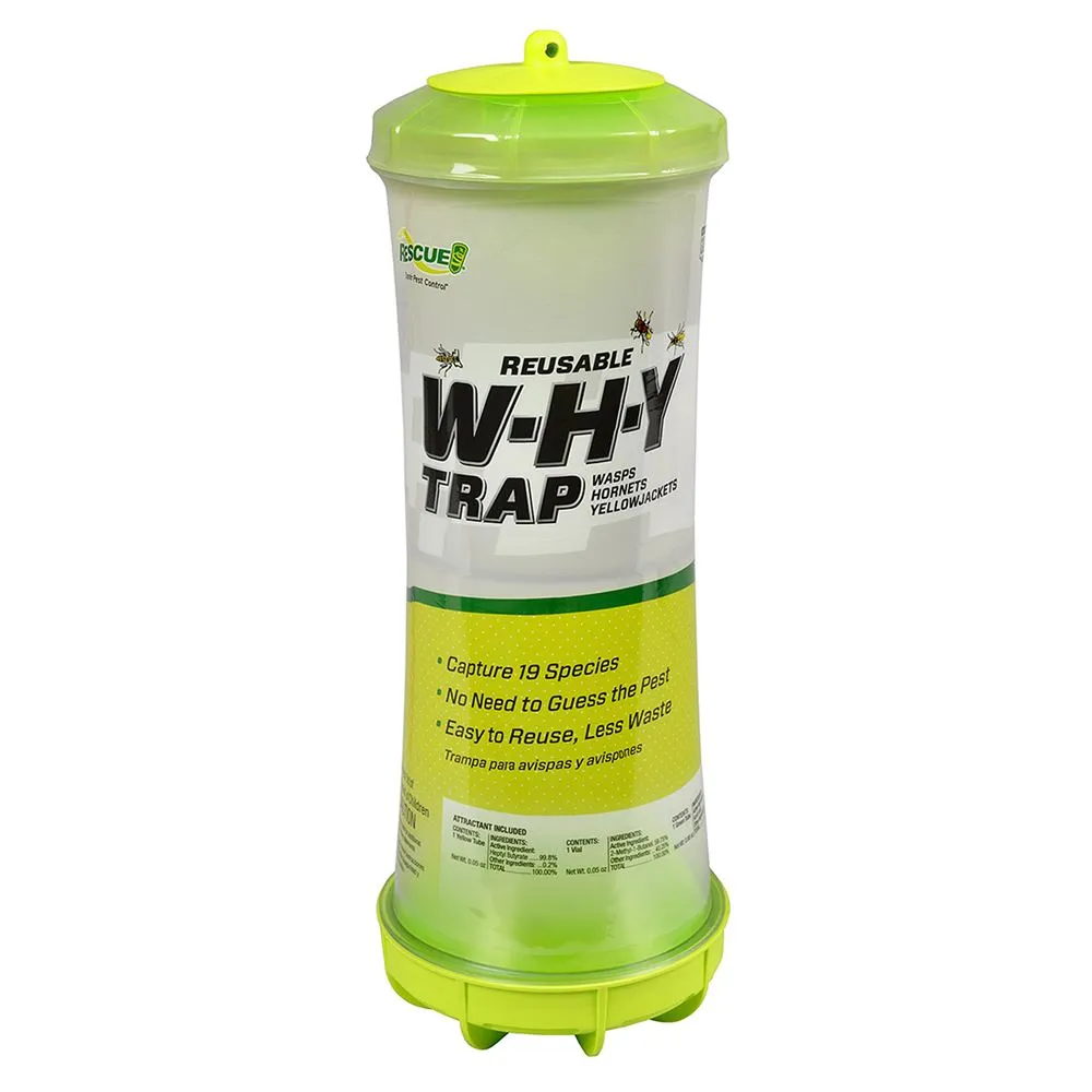 W.H.Y® Trap features two chambers and three attractants to capture over 19 different species of insects. This trap can catch 5 species of Paper Wasps, Bald-Faced Hornets, European Hornets, and 12 species of Yellowjackets.