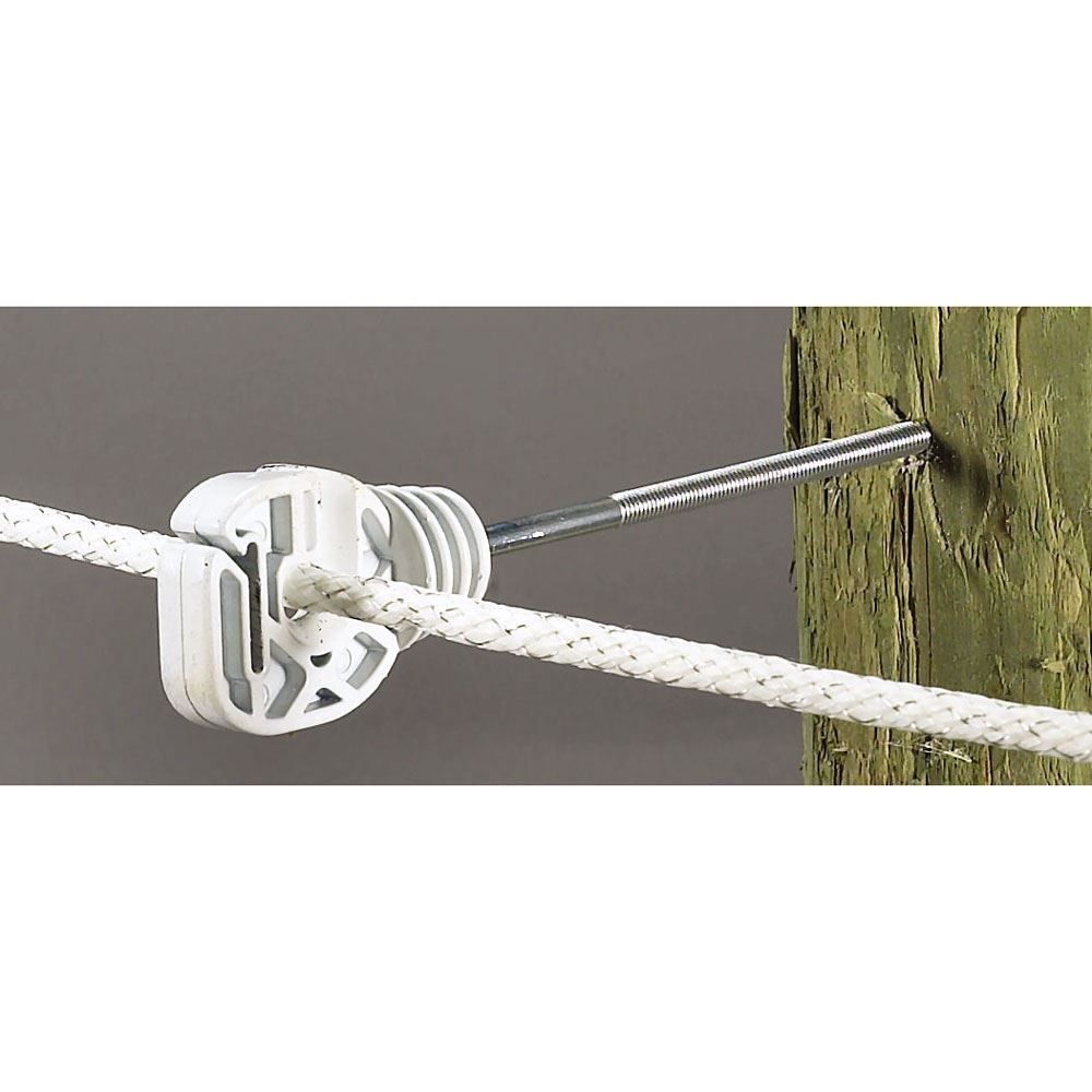 • For Wood Posts. Holds rope up to 8 MM, 1/2" tape, and wire.White.