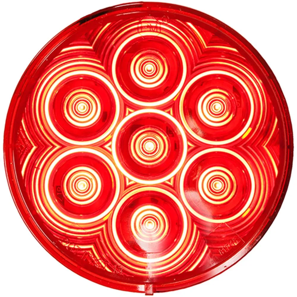 A compact sized LED trailer light to attach to your trailer or vehicle. The housing diameter measures 4-1/4 in., and the depth of this trailer light measures 1-3/8 in. There are 7 white LED lights in total that are shown through the red lens housing. A set of these white LED trailer lights could be placed on either side of your trailer for dual action lighting. This LED light uses a plug for power. When in need of a replacement plug use ASC # 90333, LED Plug For Tail Light ASC # 90332.