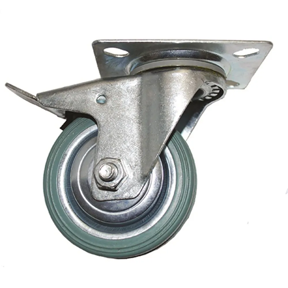 Total Brake Gray Rubber Caster, 3 in. x 7/8 in.