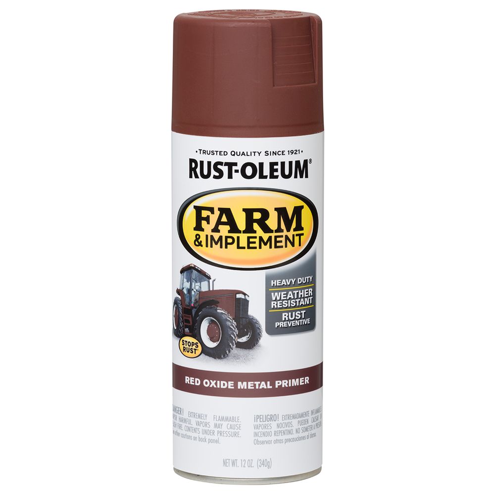 Rust-Oleum® Specialty Farm Implement Red Oxide Metal Primer provides superior rust protection for tractors, trailers, lawnmowers, and other machinery or farm equipment. Apply to metal or wood. Offers excellent color retention.