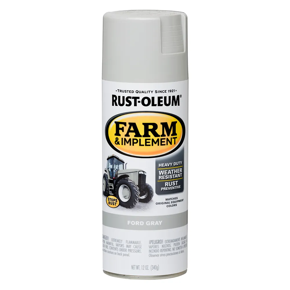 Rust-Oleum® Specialty Farm Implement Spray provides superior rust protection for tractors, trailers, lawnmowers, and other machinery or farm equipment. Apply to metal or wood. Offers excellent color retention.