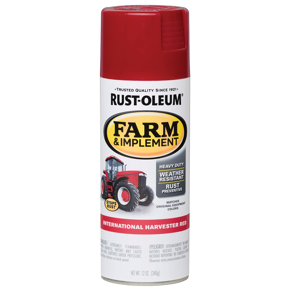 Rust-Oleum® Specialty Farm Implement Spray provides superior rust protection for tractors, trailers, lawnmowers, and other machinery or farm equipment. Apply to metal or wood. Offers excellent color retention.