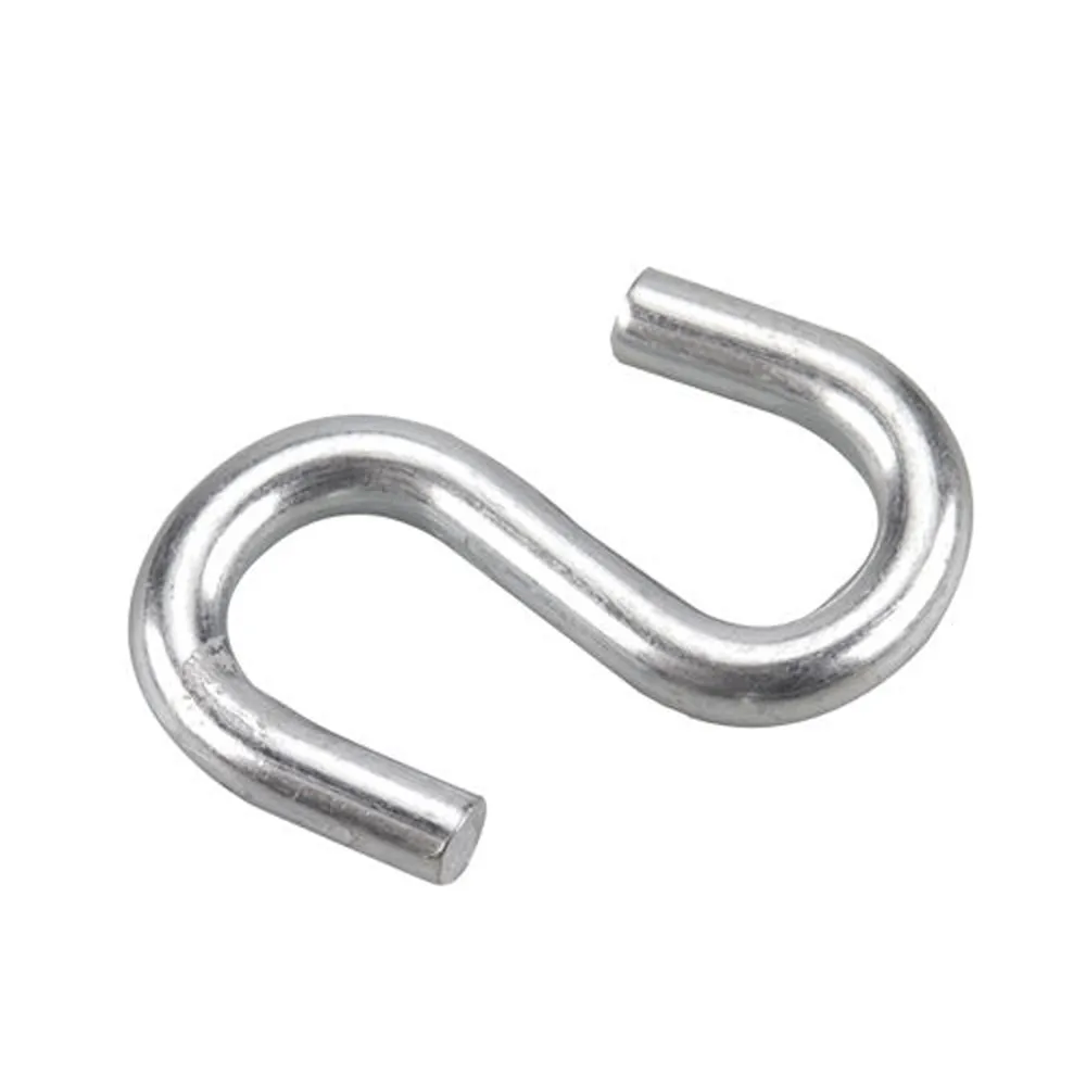This multipurpose S-hook can be opened or closed using pliers to secure hanging content. The S-shape allows for even weight distribution. Works best with chain, rope, or cable.