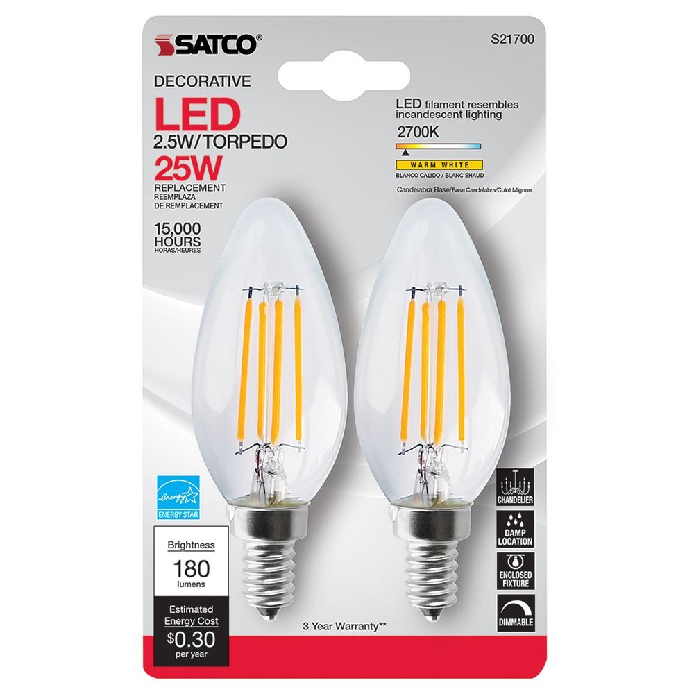 Satco is a leading supplier of lighting products, with solutions for nearly every lighting market. This Clear LED Candle Bulb will surely light up the night. It has a warm white temperature of 2700K and a 300 degree beam spread.
