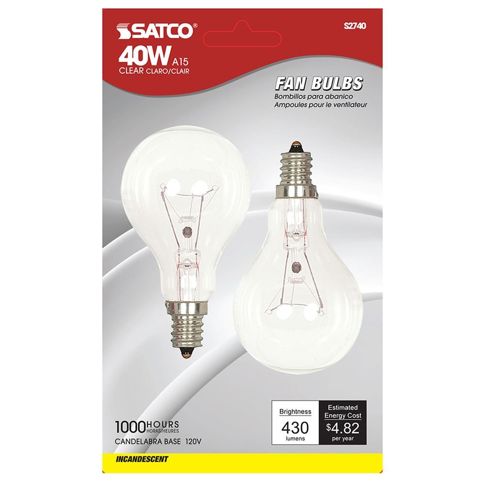 Satco is a leading supplier of lighting products, with solutions for nearly every lighting market. This Clear Incandescent Ceiling Fan Bulb will surely light up the night. It has a warm white temperature with dimmable capabilities.