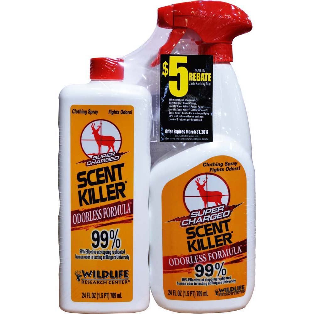 Spray your layers of clothing or knapsacks and bags with this useful Scent Killer® spray. The Super Charged® odorless Formula™ fights the strongest odors while carefully covering a 99% effective range of human odors on fabrics. This Formula™ can last for several days and continues working after the solution has dried. View our other Scent Killer® products for the right solution to fend off human odor before your next hunting trip. This spray bottle is 24 oz. and also included is a 24 oz. refill of Super Charged® Formula™.