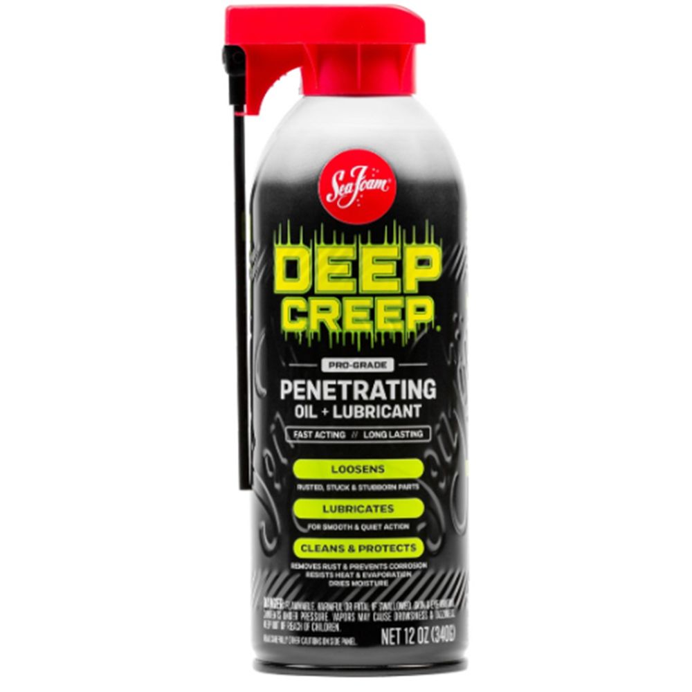 Spray on stubborn or rusted devices in your garage or home. Deep Creep is a penetrating formula that restores poorly functioning objects to working condition again. This 12 oz. SeaFoam® lubricant helps prevent corrosion and can even be sprayed upside down for hard to reach areas. It can be used on locks, chains, engine parts, hinges, gears and more. Prior to using the Deep Creep lubricant, please view the label for all safety regulations and instructions. Keep out of reach of children, avoid skin contact and do not use in temperatures over 120° F.