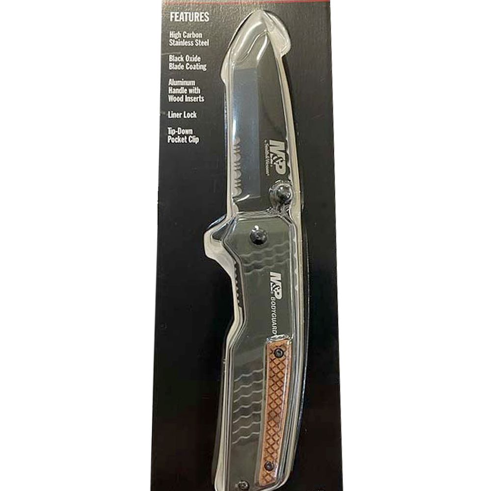 Are you looking for a folding knife that you can rely on in any situation? This blade is made of a reliable 8Cr13MoV black oxide-coated-high-carbon stainless steel and has a black, wood, aluminum, and nylon handle.