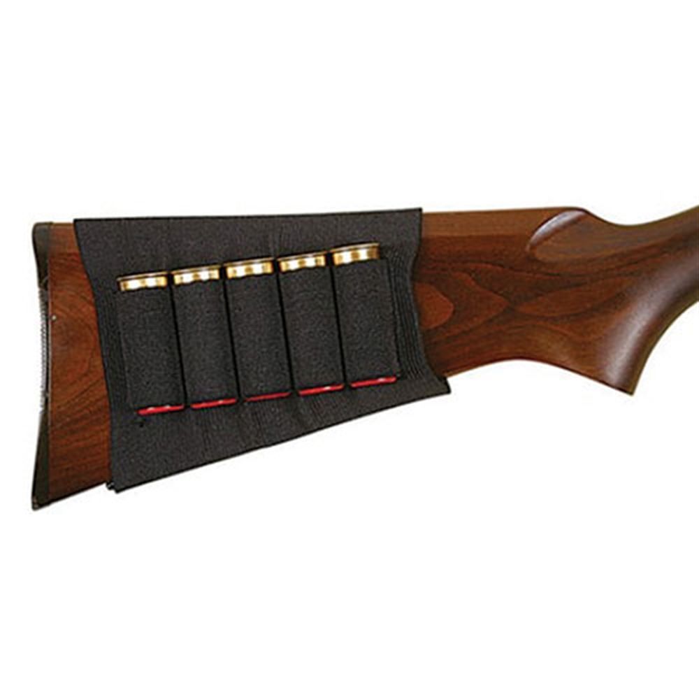 Convenient and ready to go, this shotgun shell holder can hold up to five shells while fitting snugly over the butt of the gun.